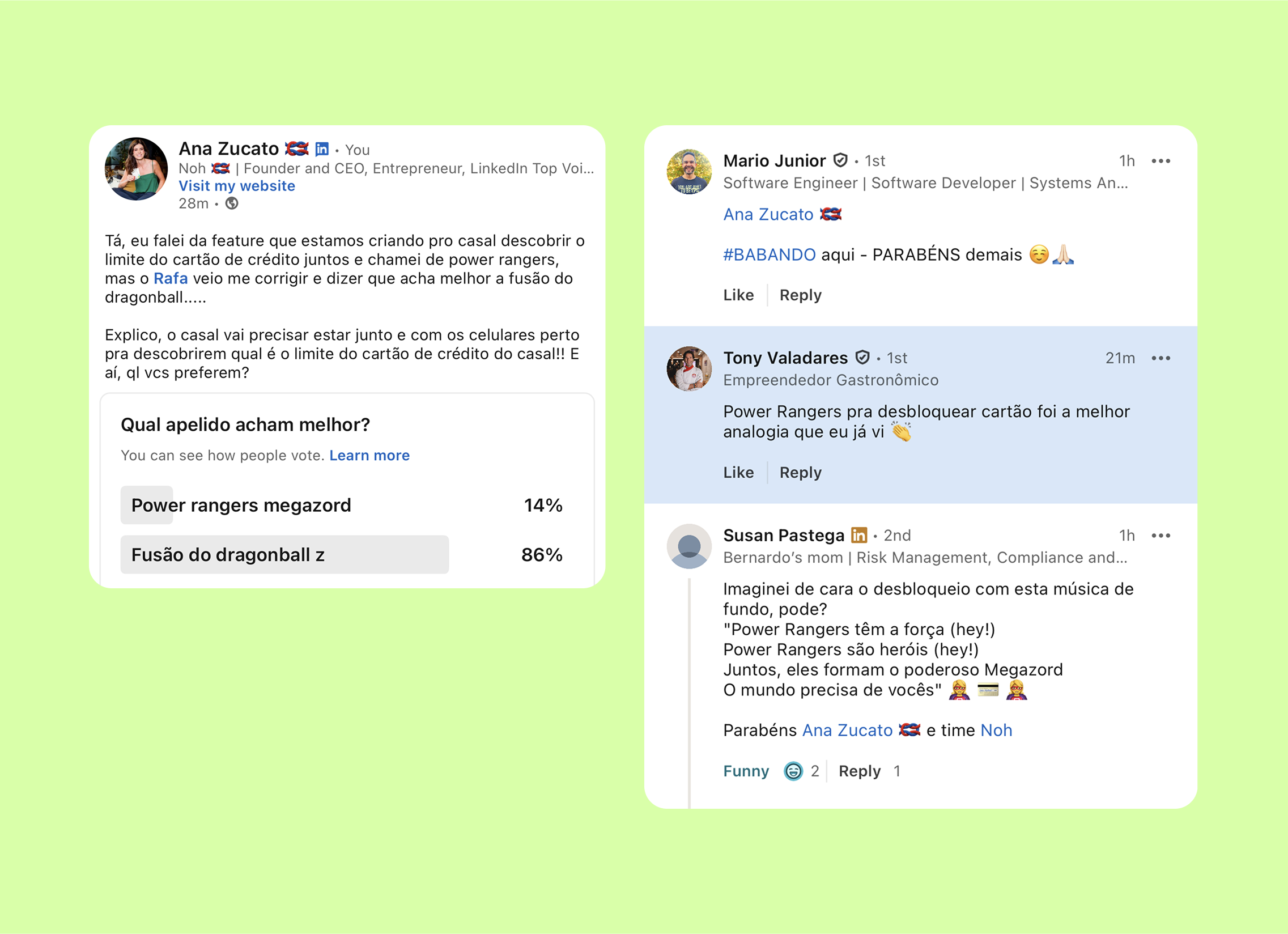 A treta amigável entre Power Rangers e Dragon Ball Z tomou conta, e a gente amou cada analogia, inclusive compartilhamos no nosso canal do Slack chamado #clientes-voc.